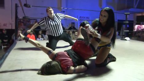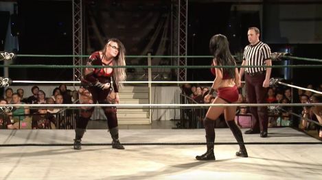 Cheerleader Melissa, the woman who would later be named the "Future Legend "of pro wrestling, faces off with the woman who was once known as Nikki at APW, Sara Del Rey. These two have a history, and they're bringing all of their grudges to the ring tonight.